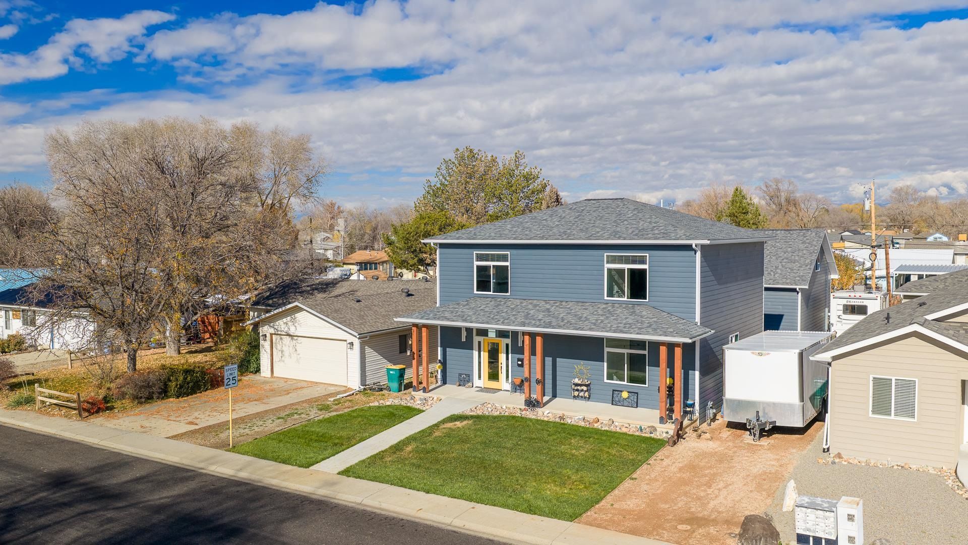 Owners call their home Monument View. It was designed around the second floor primary suite with its view and serenity. Second design consideration was to include a secondary primary suite on the main level for aging parents. The home was designed to be accessible with all doors 36 wide. The stairway to the second floor is 48 wide and would easily accommodate a stairlift, if desired. With an open design, nine foot high ceiling,large windows and lots of natural light. All the upgraded features you would expect to see in a new home. Soft close cabinets, induction range/oven, custom epoxy counters, beautiful lighting, custom tile work and attention to detail in everything. This custom one owner home was built with ease of access and energy efficiency. Built on a lighted, conditioned crawlspace, 11 7/8 TJI floor joists, both floors with second floor joist space sprayed with closed cell foam insulation to add rigidity and help keep sound transfer down. Composite siding for easy care and low maintenance. Third design consideration was a REAL 3 Car Garage! 30ft deep x 36ft wide shop/garage, overhead doors are 10x8 and 18x8 with 12x36 bonus room above the garage/shop-hang out area or potential for an ADU. No HOA, lots off off street parking, easy care yard, private back patio and only 1 year old! Easy access with no steps from the home to street or to the alley! All this just minutes from Downtown Fruita!