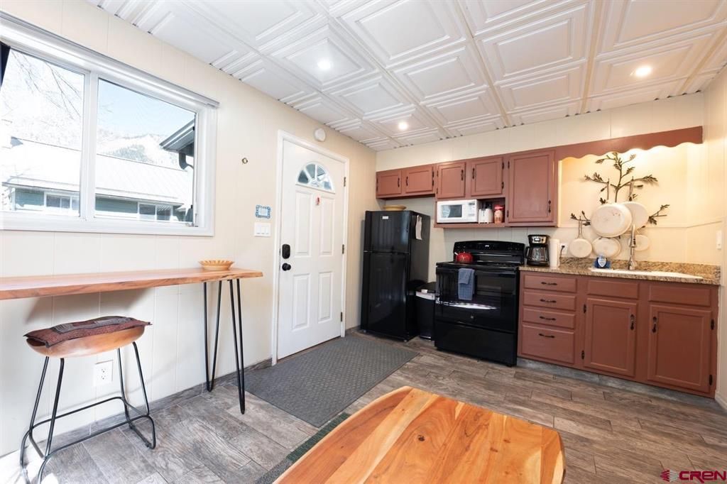 Located in the heart of downtown Ouray and only a few blocks to everything Ouray has to offer. This property has 5 bedroom and 6 bathrooms. The rental business includes 2 hotel rooms and one Apartment. The rentals share a beautiful yard with amazing views. The main home is 2 bedrooms and 3 bathrooms with a spacious living room and kitchen. The walk out basement of the main home is set up as its own studio apartment. It has a kitchenette and a new bathroom with large walk-in shower. This home has endless possibilities. Come check out this amazing investment opportunity!