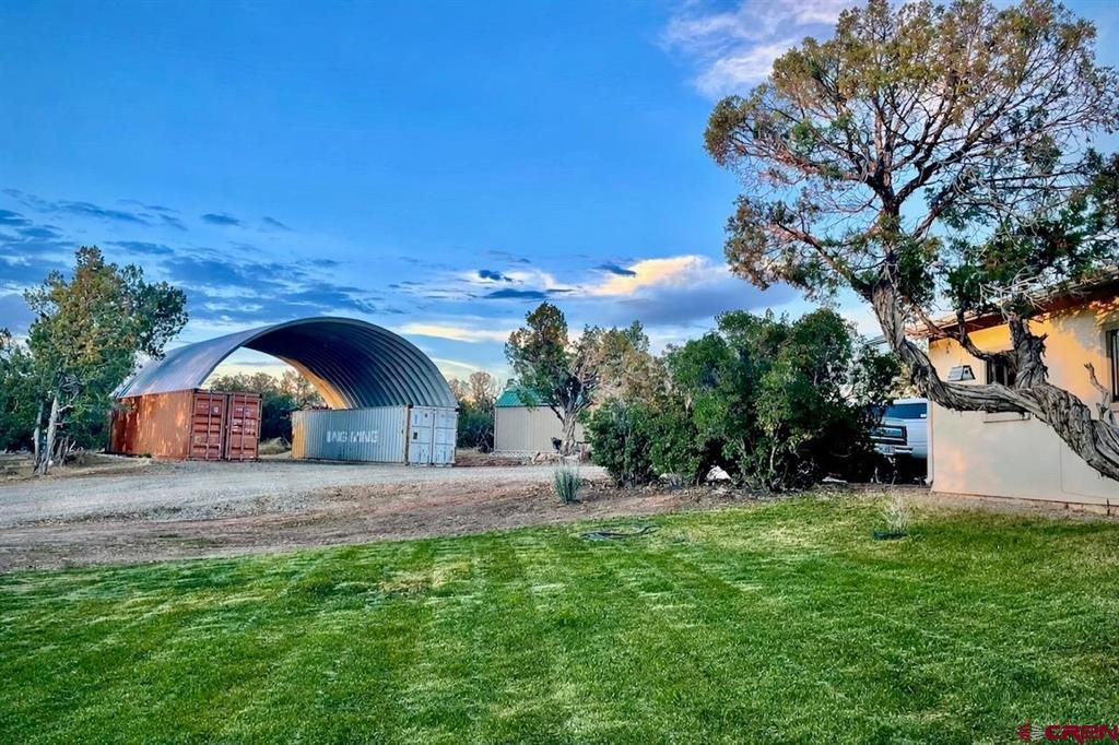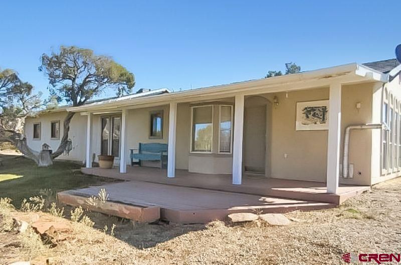 Take a look at this charming home in Dolores, Colorado, it is a hobbyist's dream! The property sits on over 3 acres and offers plenty of storage and shop space. It is fully fenced to keep in animals and is nestled among pinion and juniper trees for added privacy. The house features a thoughtfully designed open floor plan with tall windows that allow for natural light to fill the space. The kitchen and living room create a seamless area for entertaining, complete with a cozy pellet stove in the corner for added comfort during the winter months. Additionally, a covered front porch extends the outdoor living space, making it easy to enjoy summer gatherings directly from the main living area. The primary bedroom has a door that opens onto the back patio, providing a perfect spot to enjoy a beverage at any time of day. The attached two-car garage includes a large pantry/storage closet and workbenches. If that???s not enough, a huge 36x40 quonset-style covered parking area attached to two storage containers on either side with concrete floor offers ample room for tools and motorized toy storage. There is also a large covered RV parking pad with full hookups, as well as additional storage space in the back. The property features a garden shed and a fully finished shed with electricity, which is currently set up as a bar and hangout room but could easily be converted into a workout room, craft area, or office space. The landscaping around the property is natural and easy to maintain, home to abundant wildlife and beautiful views. The owner has cleared under trees and cut out dead vegetation for wildfire mitigation and aesthetics. Enjoy the fenced garden where you can grow your own vegetables, as well as cherry trees and elderberry bushes. Surrounding the property along the new fence is a biking and walking path to help you enjoy the full extent of your land. The shop with concrete floor, fencing, tree clearing, rich fenced in garden and many home upgrades has all been completed in the past 4 years. This property has been well cared for and it is ready for its new owners. Schedule a showing today to see all this property has to offer.