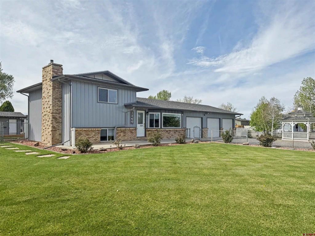 Welcome home to 1260 Frontier! This beautifully done property has been updated, immaculately maintained, and is move-in ready! From the cozy and welcoming home to the sprawling, lush yard and multiple outbuildings, this place really has it all. Set on a 0.43 acre corner lot, the property affords great views of the Grand Mesa and boasts ample irrigation water. Inside there are 3 bedrooms and 2 baths. The split floor plan features the main living room, dining room, and kitchen on the walk-in level. Down a few short steps is a 2nd living room/den with a fireplace, and a bedroom with a bathroom and laundry. The tiled shower has a window that lets in great light! Go up a few stairs from the main area and you'll find two additional bedrooms and another full bath. The beautiful kitchen has granite countertops, wonderful storage, lighting, and updated appliances. There are also updated windows, forced air heating and cooling, solid bamboo floors, and RV parking. The garage of this home is exceptional! One bay has currently been built into a man-cave/hang out space, but could be easily converted back to true garage space if needed. The other two bays are oversized and offer additional storage. Outdoors is a backyard dream- from the oversized contoured concrete patio to the dedicated bocce ball space, you won't run out of fun. A covered, screeded patio connects to a serene garden space as well as another dedicated hang-out shed. This is a perfect spot to relax or entertain all year round! A workshop and storage shed round out additional buildings. A gorgeous gazebo surrounded by aspen trees and flowers adorns the North West corner of the front yard. Come enjoy all that this place has to offer- and just minutes to schools, medical facilities and more.