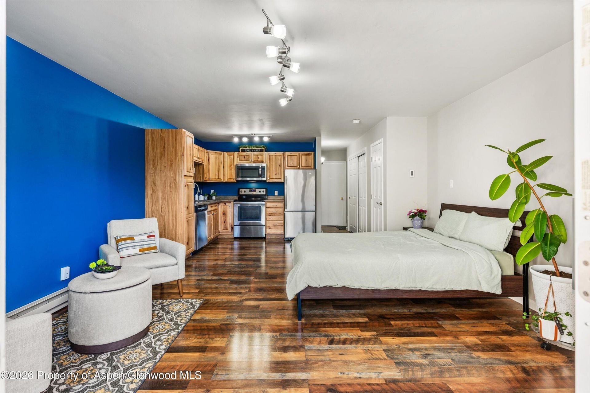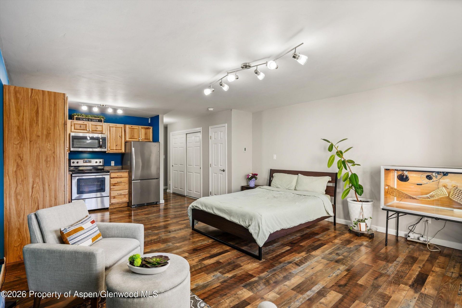 Beautifully renovated ground-floor studio in the heart of Glenwood Springs. Taken down to the studs and thoughtfully rebuilt, this inviting space features an open-concept kitchen, a stylish tiled bathroom, durable flooring, and enhanced insulation for added soundproofing and comfort. Enjoy an unbeatable location just steps from the River Trail and minutes to the RFTA bus line, City Market, Glenwood High School, and Sayre Park. Whether biking to downtown Glenwood or heading to Glenwood Meadows, convenience and lifestyle come together perfectly here.Owner mitigated all asbestos during the 2017 remodel.