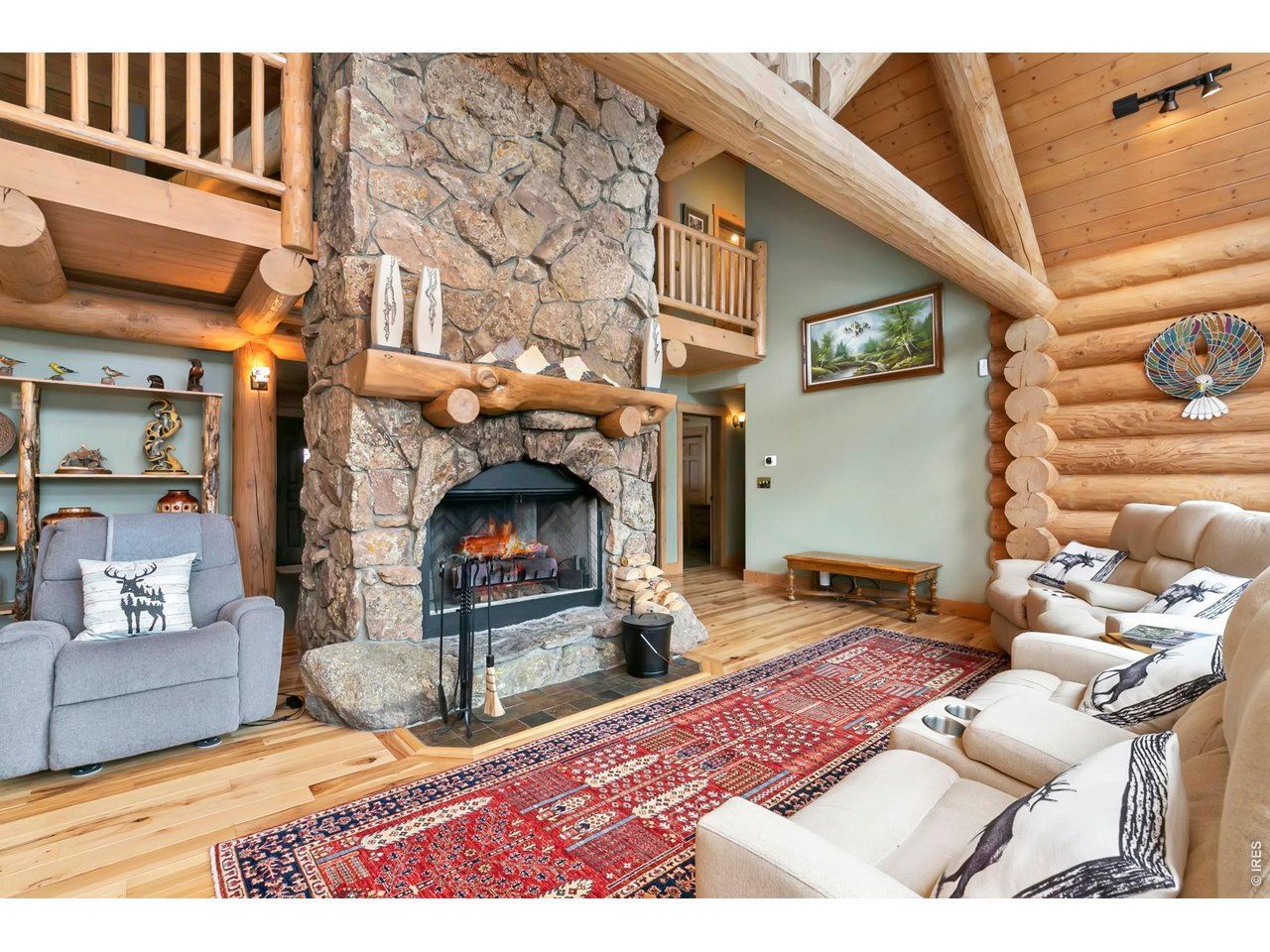 True mountain seclusion in this stunning Estes Park Log Home. Rustic Elegance meets Mountain Serenity. Nature's beauty is your constant companion. Set on 5 wooded acres at the edge of the Roosevelt National Forest, this 4,000 sq ft log home offers unmatched privacy, big mountain views, & borders 1000s of acres of wilderness. Located on a quiet lane, the home is surrounded by towering pines, open skies, panoramic mountainscapes, & silence. A true retreat w/ no neighbors in sight. Crafted from hand-peeled 12 logs & topped w/ a durable metal roof, the home exudes rustic charm. Inside, you'll find vaulted ceilings, log beams, new hardwood flooring, & stone fireplace & wall of windows in the great room. Radiant heat keeps things cozy all winter long. The kitchen is spacious & inviting, well laid out w/ large island, granite countertops, knotty alder cabinetry, walk-in pantry. The main-level primary suite opens to the deck & includes a spacious bathroom. The Upstairs, w/ bedroom, open loft, & flexible space, allows for guest overflow, work-from-home setup (Trailblazer Broadband available), or creative studio. There's a spacious rec room downstairs for exercise, music, yoga, or crafting. Step outside to a huge deck & an expansive stamped concrete patio, ideal for grilling, entertaining, stargazing, hot tubbing & enjoying the views. A whole-house generator ensures uninterrupted comfort, & an oversized garage gives you room for vehicles, gear, & toys. From your doorstep, hit the trail for hiking, mtn biking, or 4WD adventures straight into the Nat'l Forest. There's no need to drive to a trailhead when it begins in your backyard. & Rocky Mountain National Park is a short drive across town. This is a place to live fully, a place to breathe deeply, live quietly, & experience Colorado the way it was meant to be, in the heart of the majestic Rocky Mountains. Come home to Little Valley & find peace in the mountains.