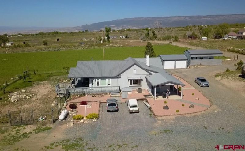 Outstanding panoramic views of the San Juan Mountain range, the Uncompaghre, the West Elk Wilderness, the Black Canyon of the Gunnison and the beautiful Grand Mesa from this lovingly remodeled spacious farmhouse, situated on 40+ Acres. The home has new plumbing and electrical, central air & heating, with all new cabinetry in the beautiful kitchen with abundant countertop space. There are several windows throughout the home to enjoy the stunning view from anywhere in the home, plus there is luxury plank vinyl flooring and solid core doors throughout. Lovely living room is adjacent to the family room, great for entertaining. The beautiful primary suite also has French doors leading onto the wrap-around deck to take in the views and enjoy the outdoors. The primary suite has a walk-in closet, soaker tub and a separate â??rain can showerâ??. In the past, the property has been used for raising livestock and producing hay. Fertile pastures, barn, loafing shed, tack for horses, storage shed along with RV garage and a 2 car garage, all makes this wonderful acreage perfect for horses, a hobby farm, perfect for a vineyard or whatever your imagination brings. There is also an irrigation pipe system designed for the 21 acres with irrigation water.