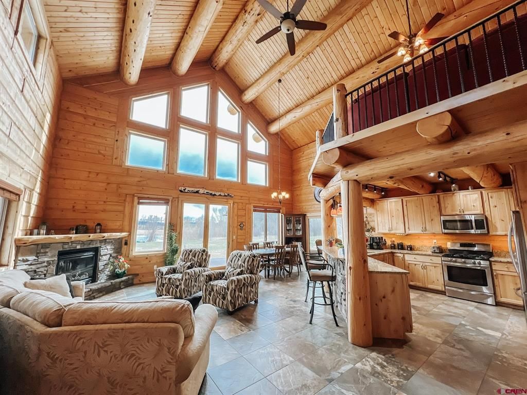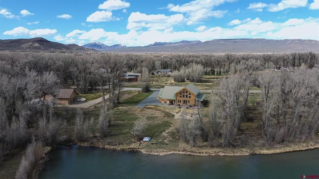 Welcome to this beautifully crafted Colorado log home in the desirable Riverwalk Estates community, set on approximately one acre and built with authentic D-logs sourced right here in Colorado. Offering a rare blend of craftsmanship, comfort and warmth with in-floor radiant heath throughout and south facing windows, and an enjoyable mountain lifestyle. This neighborhood provides access to private fishing ponds, private Gunnison River access, scenic hiking trails, and abundant wildlife including moose, elk, and deer. The open-concept main level features soaring vaulted ceilings, a stunning gas fireplace, and a spacious living area filled with natural light. The kitchen is designed for both function and gathering, complete with granite countertops, a gas range, and ample space for entertaining. The main-level primary suite offers convenience and privacy, featuring a double vanity, two walk-in closets, and a well-appointed three-quarter bathroom with a shower. A laundry room and additional half bath are also located on the main level, along with access to the attached 3-car garage totaling~ 919 Sq ft. Upstairs, you???ll find flexible living spaces including additional bedrooms and loft areas, along with a three-quarter bathroom with a shower. The home is configured as a four-bedroom property; however, one bedroom does not include a closet and is currently utilized as an office. Another bedroom is set up as a custom movie theater and features additional storage space accessed through the closet. Outdoor living is just as inviting with a large deck built from Track Decking and totaling ~854 Sq Ft , a covered patio with gas hookups totaling ~313 Sq Ft, and a flagstone sidewalk that leads to a gorgeous fire pit also created from flagstone ???perfect for enjoying the peaceful surroundings. The landscaped yard features newly planted trees and plenty of space to take in the natural beauty of the area, along with a bordering pond and nearby HOA pond offering opportunities for paddleboarding and kayaking. As an added bonus, the property includes a small guest cabin for owner use, providing a comfortable space for visiting guests. Conveniently located just minutes from Gunnison and within walking distance to Garlic Mike???s, this home offers the perfect balance of privacy, recreation, and accessibility in one of the area???s most sought-after communities. Buyer to verify all square footage.