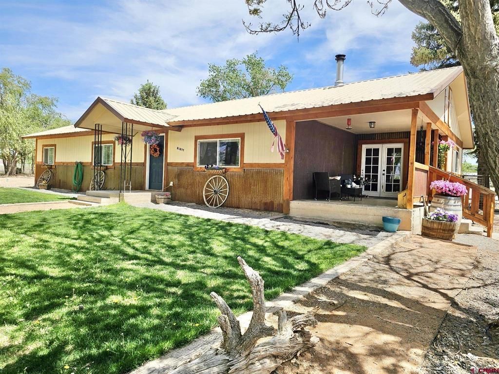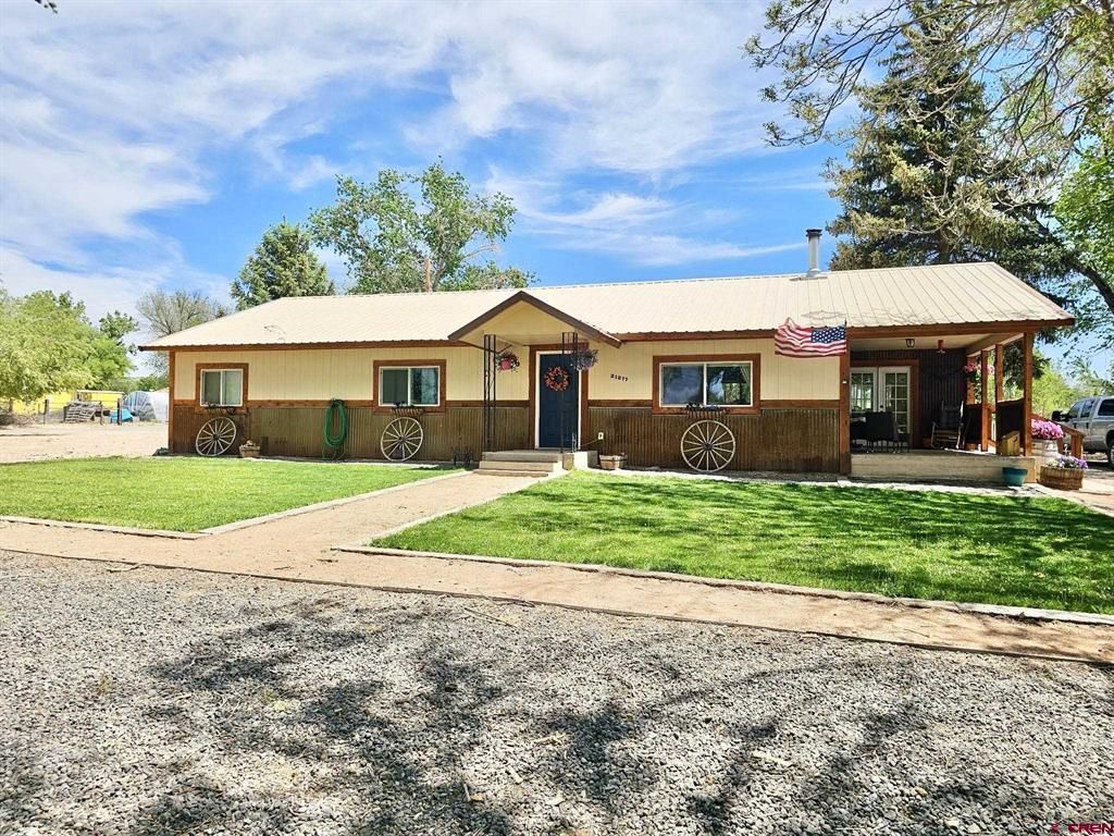 Welcome to this charming Western Colorado ranchette! Situated on a well-laid-out 1.64 acres, the 3B/2BA home is low-maintenance and quiet! The property sits back at the dead-end of Morris Rd, providing privacy and a true "end of the lane" feel. Ideal for a few horses or animals, and there is a workshop with an attached storage area and a basement. The basement is finished and is used as a cellar. The lean-to shed offers room to all of your toys. The property has a fantastic pull around driveway that makes hauling trailers or large loads extremely easy. There is ample parking for equipment, vehicles, and more. The home itself has a beautiful grassy front yard that is watered via an underground rainbird sprinkler system. The back is fully fenced and ready for either more grass or Xeriscaping. A metal roof and low-maintenance siding keep upkeep requirements low! Indoors the home features a beautiful and efficient wood burning stove, as well as electric baseboard heat. The kitchen, dining, and living room are open concept and well appointed. The primary suite features a large walk-in closet and a 5-piece bath. The two guest rooms are of good size, and the guest bath is beautifully done. There is an office nook and a dedicated laundry/mud room, in addition to another room off of the laundry that is perfect for critters or storage. Beautiful mature shade trees grace the property, and a covered front porch is the ideal spot for watching the sun go down. Perfectly situated between Delta and Cedaredge, this location offer ease-of-access to wherever you want to go. No HOA/Covenants! Don't miss out on everything this one has to offer!