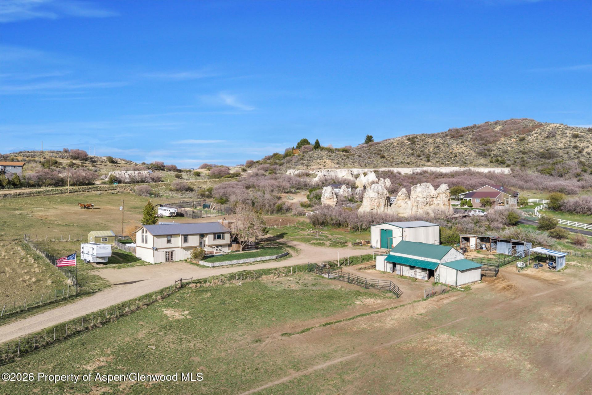 Your search for the ideal country home stops here! Set in a peaceful rural setting with wide-open valley views and natural rock outcroppings, this property offers the space, functionality, and lifestyle buyers are looking for! Inside, the home features an open floor plan with a spacious living room and kitchen, creating a comfortable flow for everyday living and entertaining! Large windows and a sliding glass door bring in natural light and give the home a clean, move-in-ready feel. Heating is both practical and inviting with two wood stoves for cozy winter days. Step outside, and the property truly shines! A 25 x 30 barn with storage rooms at each end offers flexibility for animals or equipment, complemented by a chicken coop and greenhouse for those interested in sustainable living. The 30 x 40 shop/garage with concrete flooring and 220-volt service is ideal for projects, storage, or workspace needs. Additional features include multiple pole barns and lean-to structures, with fencing already in place. The land itself is equally impressive, with usable pastures, mature trees, and inviting outdoor areas. Just steps from the kitchen is a covered side deck that provides the perfect spot to relax and take in the scenery, whether it's enjoying your morning coffee or watching the sunset. Wildlife can be regularly seen on the property, adding to the peaceful, country feel! This property combines comfort, usability, and lifestyle--ready for animals, hobbies, or simply enjoying the quiet beauty of rural living! Schedule your showing today?