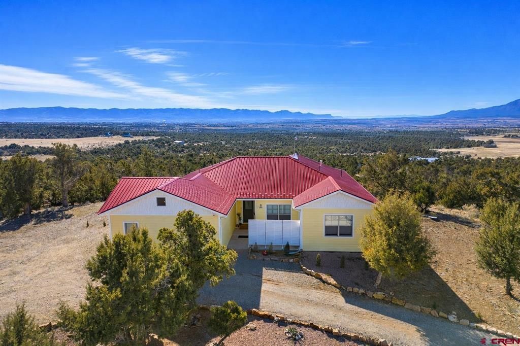 Where high desert living meets sweeping mountain vistas and sparkling waters, this elevated home sits between two Colorado reservoirs, offering a bright, airy interior with a hint of coastal vibe. Step inside this custom-built 2019 single-level home, where every detail reflects quality, comfort, and style. The foyer opens to a bright, airy living room with vaulted ceilings and a wall of windows, creating a seamless connection to the covered back deck and emphasizing the indoor-outdoor flow. Dark wood floors anchor the space, while soothing sand and sky tones, crisp white trim, and French doors introduce a subtle coastal vibe rarely found in the high desert. The kitchen is a showpiece: a large granite island anchors the heart of the home, perfect for cooking, dining, gathering, and entertaining. Rustic yet refined wood cabinetry, a brick accent wall, farmhouse-style sink, coastal-inspired pendant lighting, and high-end LG stainless steel appliances???including a wall oven, stovetop, dishwasher, hood, and refrigerator???combine function, style, and beauty. Beyond the kitchen, a hexagonal extension framed by windows serves as a bright, inviting dining area. Two wings extend from the living area. The expansive primary suite to the east features dual vanities with granite countertops, a large walk-in closet, and private access to the back deck, capturing sweeping views and abundant natural light. This serene retreat perfectly combines luxury, comfort, and connection to the outdoors. On the west side, three additional bedrooms share a full bath, each room offering large windows, wood floors, and generous closets???ideal as bedrooms, guest rooms, or home offices. A dedicated laundry area sits conveniently between the oversized 2-car garage and front entry. Additional high-end features include central air, a large exterior Trex deck, Hardie Board siding, new gutters, and a steel roof, blending durability with elegance. With a location just minutes from the McPhee boat ramp, this home could easily double as a lake retreat, perfectly combining high desert privacy with water recreation access. Ample space remains to build a large additional garage for boats, RVs, or outdoor gear, and the HOA permits an additional garage???enhancing both functionality and long-term value. The HOA, with fees of only $250 per year, handles road maintenance and snow removal. This is more than a home???it???s an elevated lifestyle, where luxury, comfort, and subtle coastal flair meet the beauty of living in the Colorado high desert.
