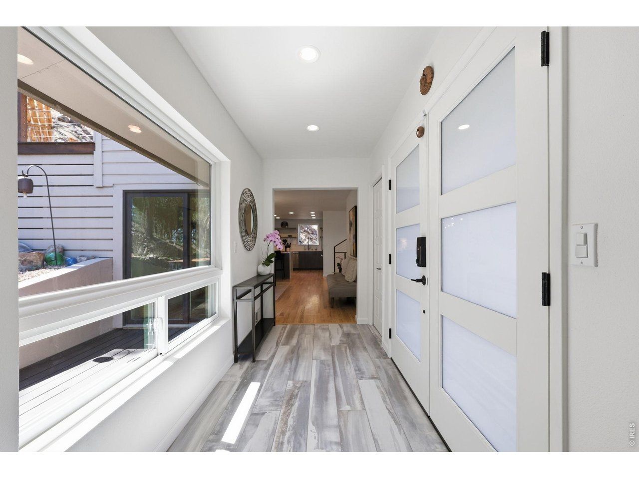 The Crestview Sanctuary.Tucked on a peaceful cul-de-sac street, The Crestview Sanctuary captures the essence of Colorado living, where serene mountain surroundings meet effortless access to Boulder, Lyons, and Longmont. This thoughtfully updated residence offers a rare balance of privacy, natural beauty, and everyday convenience. A welcoming front porch invites you into a light-filled interior where soaring ceilings, expansive new windows, and rich wood flooring create a warm refined atmosphere. The living room is anchored by a gas fireplace, offering comfort and a sense of openness. New lighting and a striking front door elevate the home's modern appeal. The kitchen is visually stunning and functional, featuring Cambria quartz countertops, a Thermador Suite, breakfast bar, and a window framing tranquil wildlife views, bringing the outdoors inside. Just below, a secondary living area provides a relaxed retreat for media or gatherings, with seamless access to an additional deck and nearby laundry. Multiple Ipe decks and terraces offer shaded lounging, scenic vistas of Heil Ranch, a private hot tub along with gardens full of perennials. Two secondary bedrooms provide high ceilings, terrace, one with a built in lofted bed. The primary suite is designed for retreat with Velux skylights, customized walk-in closet, barn door accents, and a spa-like bath with an oversized shower. Additional highlights include a new roof (six months old) with a transferable warranty and a Hepa filter system with humidifier for year-round comfort. Loved for its quiet setting, captivating views, and immediate access to nearby hiking trails and three cities, this home offers a lifestyle that feels worlds away - yet remains connected.