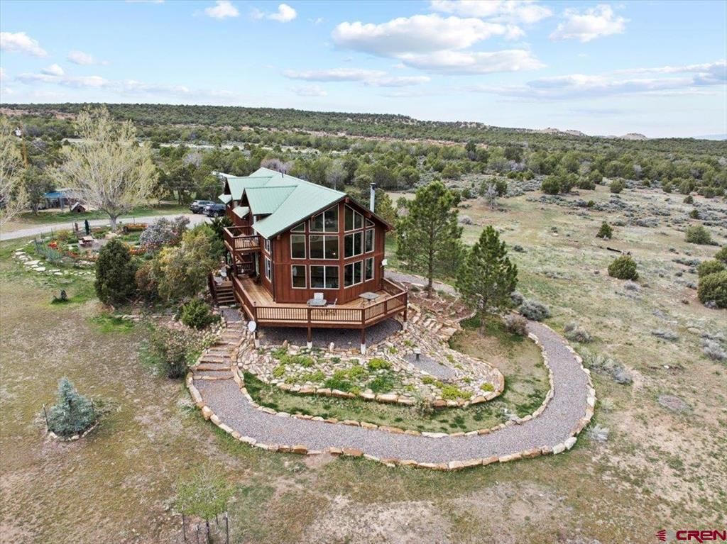 COUNTRY LIVING A IT'S BEST!!/Great Hobby Farm!/located North Loghill Mesa-west of Colona oof of CR 22; 80 acres parcel (1/4 X 1/2 miles) with Development potential /2 story Main Home (stick built) +Mfg home+ 4 car garage/workshop -Tri-county water/ CR 22 year round access/ VIEWS to: Grand Mesa/Strom King/ Cimarrons/San Juans/Montrose Valley/2 HOMES totaling 3004 SF/( Total 5 beds-total 4 Baths )/MAIN HOME is 2 story 2352 SF stick built wood frame/wood siding/ metal roof with 2 story floor to ceiling "prow style windows" for Mountain views/wrap around redwood viewing deck +2 car attached garage/workshop. 3 bedrooms on 2nd floor-Main bedroom has his and hers bathrooms w/south facing viewing deck + office/ 2 remaining bedrooms with shared bath & laundry room on 2nd floor /MFG HOME (starting at pic 31-41) is 24 X 48 -1 story wood sided -metal roof/ with 2 beds 1 bath (has long rental history)/ DETACHED 4 CAR GARAGE/(storage/workshop) is 1152 SF wood frame with metal roof. MAIN HOUSE (40 acres) GROUNDS: bordered on the N by BLM with access to Horse Fly Canyon to the west/seasonal ponds & creeks/grounds partially cleared with meadows/ TREES: Ponderosa Pines/Blue Spruce/Australian Pine/Aspens/Fir/Lilac bushes/Crab apple tree. Large fenced flower garden area (tulips/daffodils/trees) w/sprinklers /water fall feature by walkway to house/fenced in vegetable garden by MFG house/fenced in chicken yard/dog house Easterly 40 acres: sage & juniper trees/ meadows Location: N Loghill off of CR 22 (20 minutes to Montrose-20 minutes to Ridgway) HUGH DEVEROPMENT/INVESTMENT POTENTIAL! The property is 80 acres. The current main house /MFG house & 4 car detached garage are placed on the westerly 40 acres of the 80 acres...allowing further subdivision. This can be subdivided to 2-40's with a lot line adjustment (requiring a survey filed with the county). This property is zoned by Ouray county for further subdivision. Each of the 2- 40 acre parcels can then again be divided into a 3 lot (minor subdivision) with county application) or a 6 lots-Major subdivision-(requiring County commissioners review & approval). Subdivided 40 can have well.