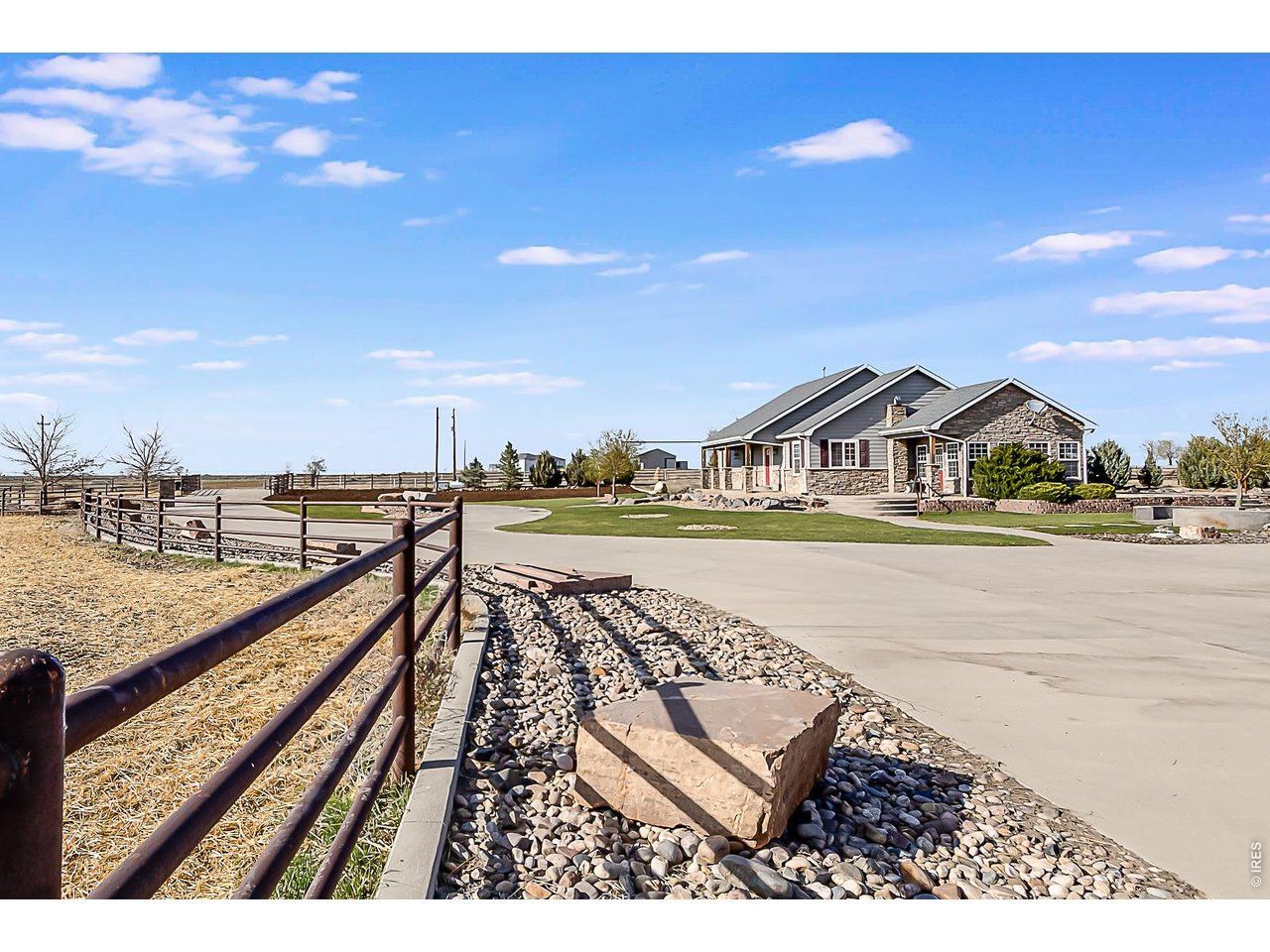 With over $100,000 in recent improvements, 29720 County Road 78 is a rare 4.4-acre estate offering upgraded country living with exceptional versatility for livestock and horses. Originally purchased for $1,164,000, the seller is offering this extensively upgraded property at a loss-creating a unique opportunity to capture significant built-in value.The ranch-style home features five bedrooms, including two spacious primary suites on separate levels, three updated bathrooms, and a luxurious stone walk-in shower.The main floor showcases pine hardwood flooring throughout the living and dining areas, anchored by a pellet stove. A tiled sunroom/mudroom just off the kitchen opens to both the east-facing patio and the west-facing front porch with mountain views and stunning sunsets. Main-floor laundry is complemented by an oversized laundry/utility room in the finished basement, which also features new luxury vinyl plank flooring, a second pellet stove, and two additional bedrooms, one with a private en suite.A converted 3,800-sq-ft barn now serves as a multi-use shop with a bathroom and a heated, insulated 58' x 23' bay, ideal for RV or trailer storage or workspace. A 1,152-sq-ft detached garage and additional storage building are connected by a fully concreted driveway.For professional cattle operations or horse enthusiasts, the 5,440-sq-ft cattle barn includes a wide rubber-matted aisle, wash rack, vetting chute, cooler room, blower room, and a climate-controlled office. Pasture to west of cattle barn may be able to have use argeement w/ dairy. Four oversized pipe-panel stalls are designed for prepping or boarding livestock, with a layout equally suited for horses.The entire property is enclosed with clean pipe fencing (no wire) and secured by a private automated gate with two additional access points. Additional features include two septic systems, two backup generators, and two reclaimed, reseeded pastures with functional cross-fencing. Property is occupied.