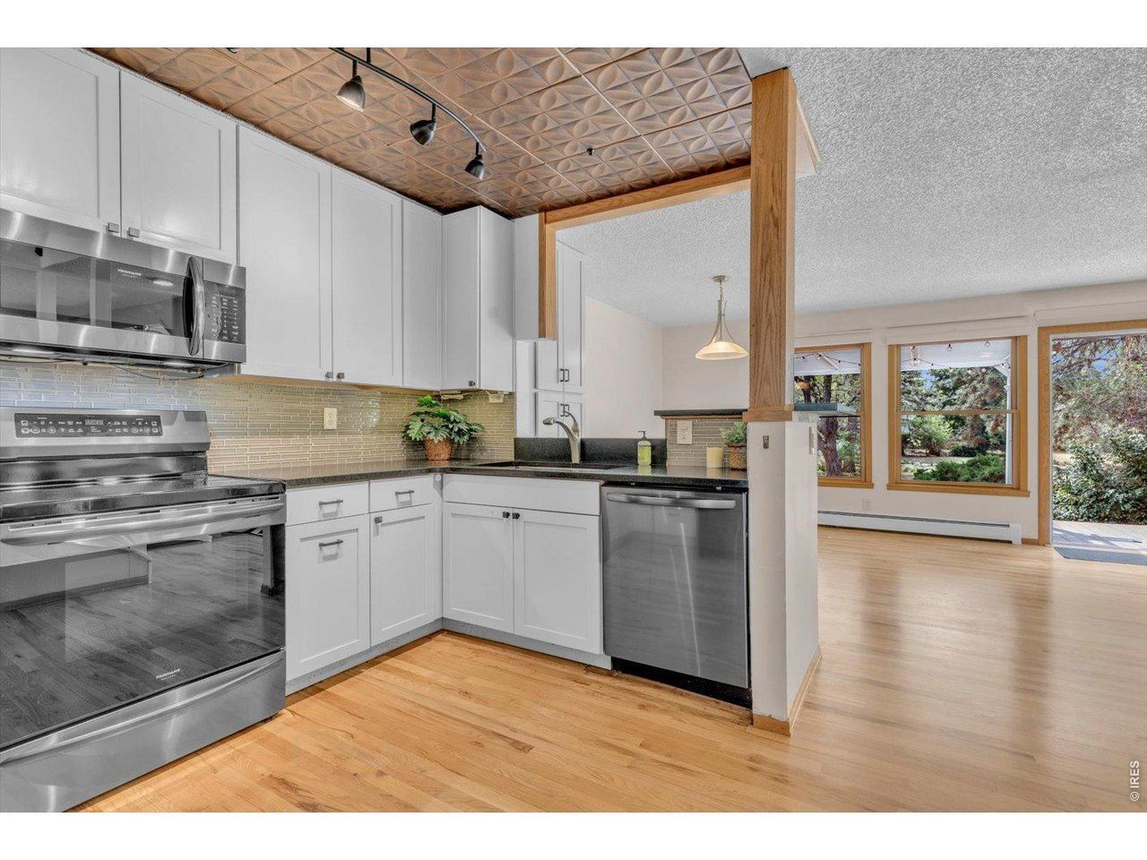 Nestled in the heart of Boulder, this beautifully updated townhome offers an exceptional blend of comfort, space, and natural beauty. Enjoy stunning mountain views right from your home, along with a peaceful backyard that opens to a shared HOA green space featuring a serene pond. The setting is rich with wildlife, where it's common to see foxes, birds, ducks, blue herons, and even the occasional deer. The interior has been extensively updated, beginning with a full kitchen remodel, resurfaced hardwood flooring in the living/dining area, and oak vinyl plank flooring in the family room on the main level. A striking reimagined staircase anchors the space, showcasing solid red oak treads, crisp white risers, a solid oak handrail with whitewash trim, and a custom powder-coated steel railing. Additional upgrades include the addition of a mini-split system, along with a beautifully redesigned outdoor patio featuring a louvered pergola and Trex decking-ideal for effortless indoor-outdoor living. The primary suite offers a renovated bath featuring dual vanities and a distinctive walk-in closet that connects directly to the bathroom, creating a seamless and functional design. The finished lower level expands the home's livability with a dedicated recreation room, currently configured as a media space with projector and speakers-both included, the 4th (non-conforming) bedroom, and a spacious storage room. Two designated parking spaces are included-one conveniently located directly in front of the unit and a second, #39. Ideally situated, the home provides close proximity to Boulder's renowned shops, trails, parks, Boulder's famous Pearl Street Mall, and public transportation. Come see this gem today - nothing like it!