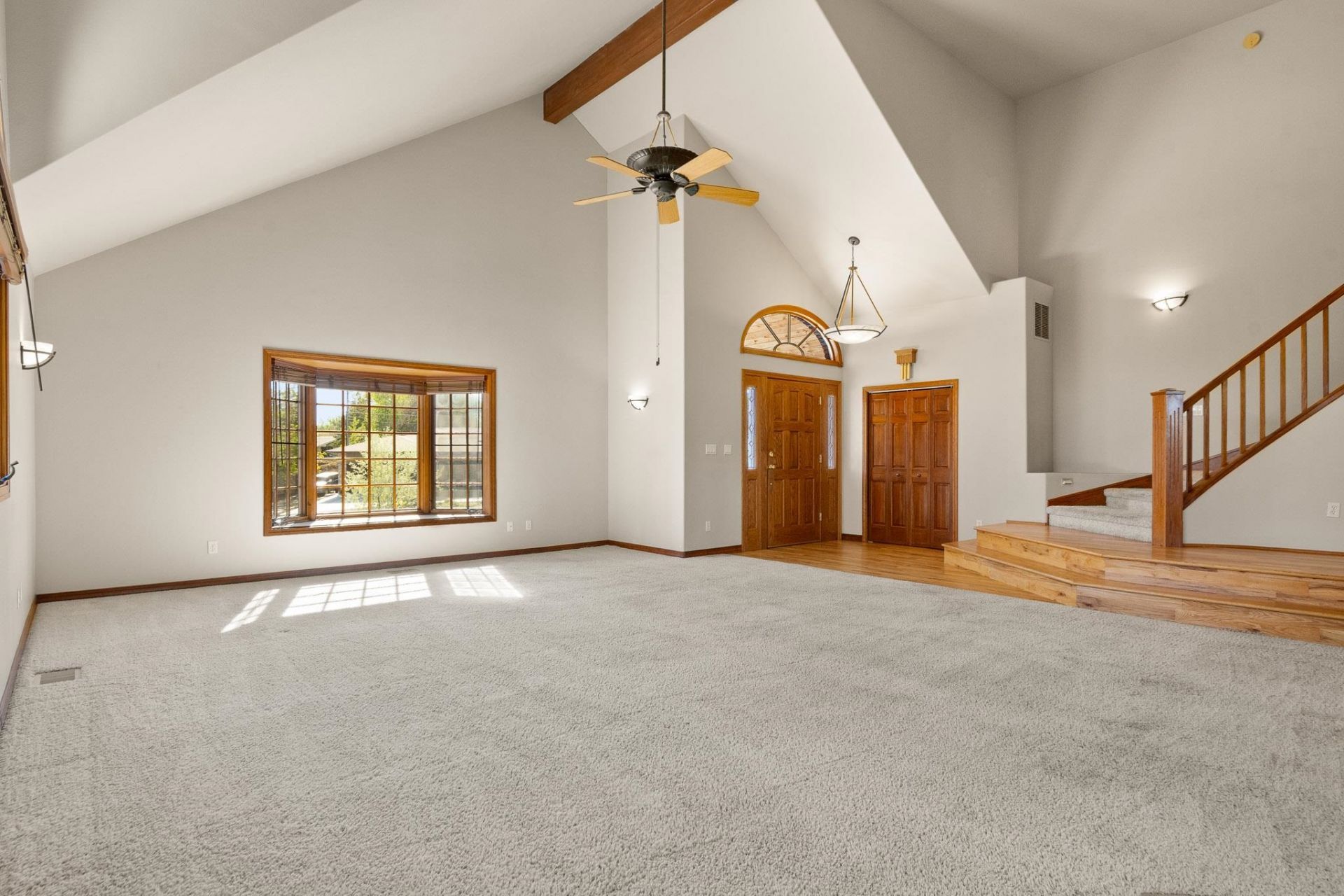 Welcome to Horizon Glen - one of North Grand Junction's sought-after neighborhoods and this home is exactly what you'd hope to find here. From the moment you arrive, the classic brick and stucco facade, mature landscaping, and views stretching out in every direction tell you something special is waiting inside. Step through the front door and the living room makes an immediate statement. Cathedral ceilings soar overhead, a grand staircase commands the space, and French doors bring in light and connection to the outdoors. This room was built for gathering, celebrating, and living large. The kitchen carries its own personality - warm wood cabinetry, a center island with counter seating, gas range, and a layout that keeps the cook right in the middle of the action. Just off the kitchen, the formal dining room is a showpiece - gorgeous sliding doors open the space beautifully, and sets the mood for any occasion. A main-level bedroom offers flexibility for guests or a home office, and the backyard patio is the kind of space that earns its keep every single season - mature trees, an above ground garden bed and natural surroundings that make stepping outside feel like a genuine escape. Head upstairs and the primary suite delivers a true retreat with a four-piece en-suite featuring a jetted tub, walk-in shower, a beautiful vanity, and walk-in closets. Two additional bedrooms and a second full bath round out the upper level, including a bonus storage space above the closets; that's the kind of practical detail you appreciate more every day. The garage is oversized and comes equipped with an EV charger - and owned solar means your energy bills stay in check year-round. Raised garden beds, and mature landscaping front and back complete this incredibly well-rounded property. Homes like this in Horizon Glen don't come available often. Schedule your showing today - this one won't wait.
