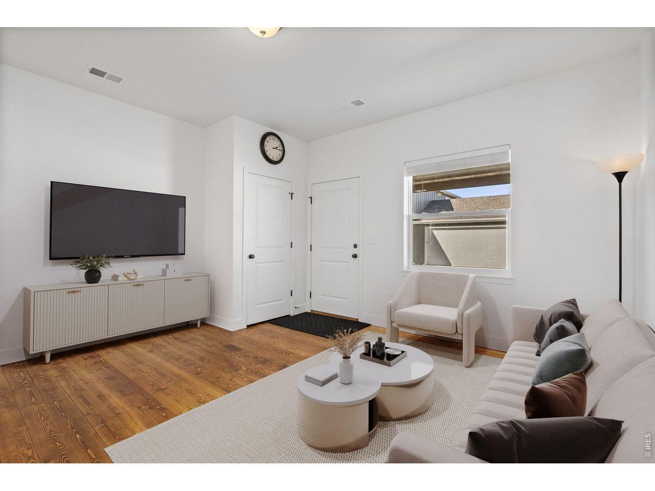 Welcome home to this charming, move-in ready townhome that truly checks all the boxes. From the cute curb appeal to the bright, open main level, every space feels welcoming. The kitchen shines with stainless steel appliances, modern grey cabinets, and butcher block island. The main-floor primary suite offers privacy and comfort, tucked away from the upstairs bedrooms. Head upstairs to find two additional bedrooms, a full bath, a handy laundry area with washer and dryer included, and a generous loft perfect for a playroom, office, or cozy hangout. The full basement already has a beautiful wood ceiling and rubber flooring, making it a great bonus space with easy finishing potential. Outside, enjoy a fully fenced backyard with a large patio and garden beds-your own private retreat. The oversized garage even has a rear overhead door that opens to the yard, making gatherings and outdoor projects a breeze. With a radon mitigation system already in place and HOA coverage that includes exterior maintenance, insurance, trash, recycling, and irrigation water, living here is easy. All of this just minutes from Wellington's Main Street, grocery stores, schools, and more.
