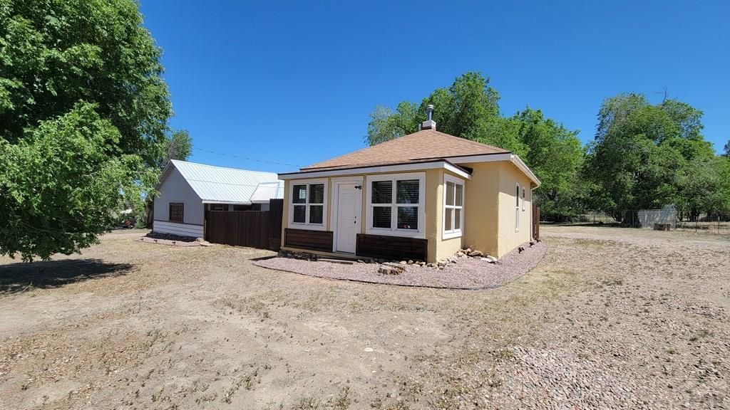 Ideal situation for multi-generational living, short term rental business, or just a great unique home. Main home is a fully remodeled 760 square foot 1 bedroom, 1 bath beauty with luxury features throughout. Open living/kitchen concept, sunken plant room/entryway with exquisite tile work, sliding barn doors and so much more. Additional dwelling is full 725 sq. ft. home with no kitchen, but has counter and sink for efficiency living in style! More tile work, bathroom fit for royalty, comfortable living room and super large bedroom. Both units have privacy and decks and views of Pikes Peak and the surrounding Colorado Mountain Ranges. LARGE acre lot is completely fenced and private. Surrounded by agricultural fields and State Highway frontage for year-round access. If this is your situation, please see this property, you will NOT be disappointed!