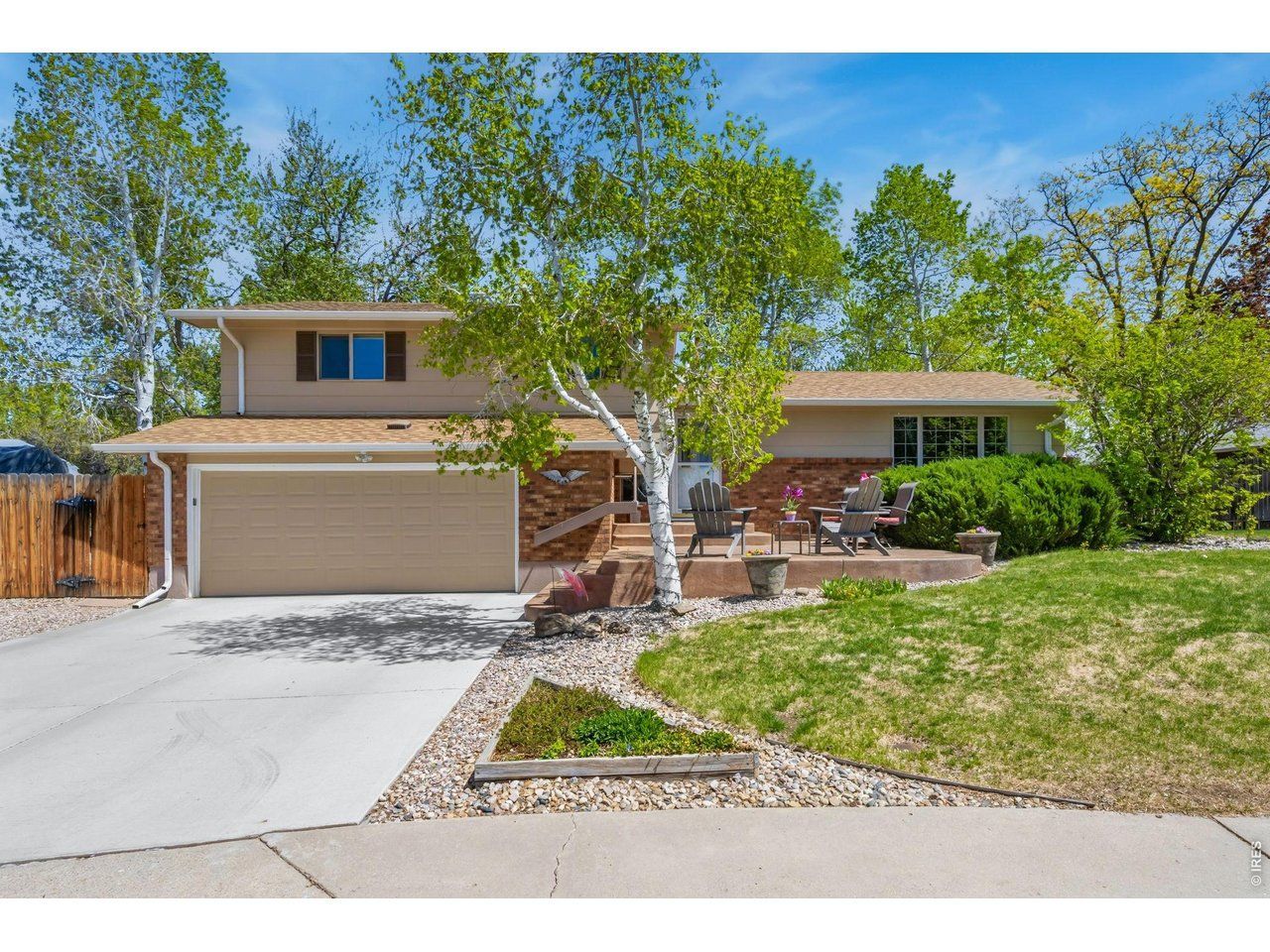 Welcome to 605 Jack Pine Place, ideally positioned on a quiet cul-de-sac. This southwest-facing home sits on an expansive 16,700 sq ft (.38 acre) lot and offers both privacy and incredible outdoor living, all enhanced by newer exterior paint and thoughtful updates throughout. A newer driveway leads to the stamped concrete front patio, where you can take in mountain views and enjoy a peaceful place to relax. Inside, the home welcomes you with durable vinyl plank flooring that flows through the living room, dining area, stairs, and hallway, creating a cohesive and low-maintenance main level. The living room connects seamlessly to the dining space and into the kitchen, where you'll find custom unstained maple cabinets with convenient pullouts and a large pantry, combining beauty with everyday functionality. Just off the kitchen, sliding glass doors open to a large sunroom - perfect for enjoying Colorado's seasons while overlooking the private, fenced backyard. This outdoor space is truly a standout, featuring extensive landscaping, a large garden area with established raspberry and strawberry plants, and ample room to create your ideal outdoor retreat. The property also includes an approximately 12x16 ft workshop complete with electricity, heat, and A/C, an additional 8x16 ft storage shed, and rare RV parking both in the front and back. The lower level offers a cozy family room with a gas fireplace, creating a warm and inviting gathering space. Upstairs, the primary suite includes an attached bathroom with a walk-in shower, along with two additional bedrooms and a full bath. The basement expands your living space with a rec room featuring a hobby/workbench, a laundry area, and an additional bedroom-ideal for guests or flexible living needs. With its prime cul-de-sac location, expansive lot, versatile outbuildings, and exceptional indoor-outdoor living, this home offers a rare opportunity to enjoy space, comfort, and functionality in one beautiful Loveland property.