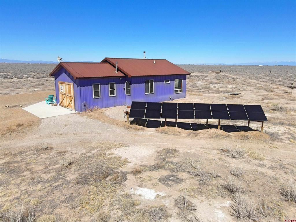 Enjoy the perfect balance of privacy and convenience with this 2-bedroom, 1-bath off-grid home on 40 acres???just 15 minutes from Alamosa and Monte Vista. Experience wide-open space without sacrificing accessibility. Built for comfort and efficiency, the home features quality insulation throughout, a cozy wood stove for primary heating, and propane systems for added flexibility. A whole-house water filtration system with reverse osmosis at the kitchen provides clean, reliable water. Inside, the bright and inviting layout is complemented by custom finishes, warm wood accents, and large windows that capture expansive views in every direction. The property is fully set up for rural living and recreation, complete with an established archery range, burn pit, and endless room to explore or expand. A standout feature is the 30??? x 60??? barn/shop, offering exceptional versatility for storage, hobbies, or workspace, including a heated and finished section. A 10??? x 60??? covered carport provides additional protection for vehicles or equipment. Whether you???re looking for a full-time residence, weekend escape, or self-sufficient homestead, this property offers space, functionality, and freedom???without feeling too far removed.