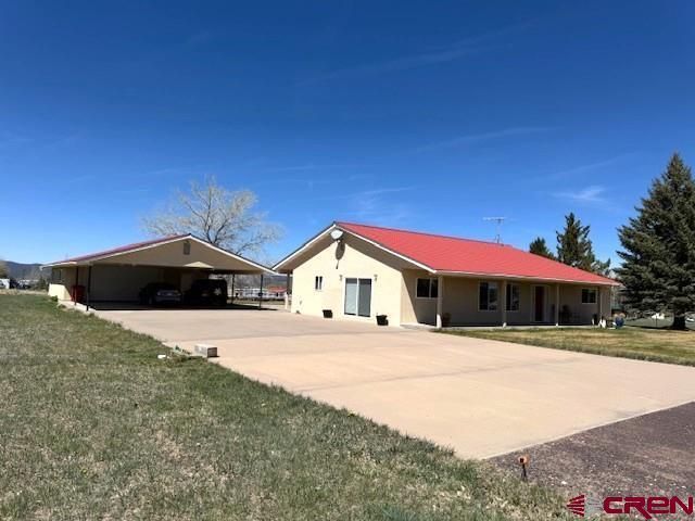 This beautiful 1,956 sq ft home offers magnificent views of the Mesa and Ute Mountain, perfectly situated in a quiet cul-de-sac. Inside, you???ll find three spacious, carpeted bedrooms, including a large primary suite with a large oversize closet, along with one 3/4 baths. The primary bath features a cultured marble shower for a clean, elegant finish. The open kitchen effect is designed for both style and function, showcasing granite countertops, abundant white cabinetry, and generous counter space, complemented by laminate flooring. Hunter Douglas blinds throughout the home. Outside enjoy your two covered porches, the property is well-equipped with two shares of Crowley WUA irrigation and over 80 sprinkler heads to keep the landscape thriving. Car enthusiasts and those needing extra space will appreciate the 3-car garage with a multi-purpose room, plus an impressive 3-car carport. Expansive concrete areas create plenty of space for parking, entertaining, or outdoor projects.