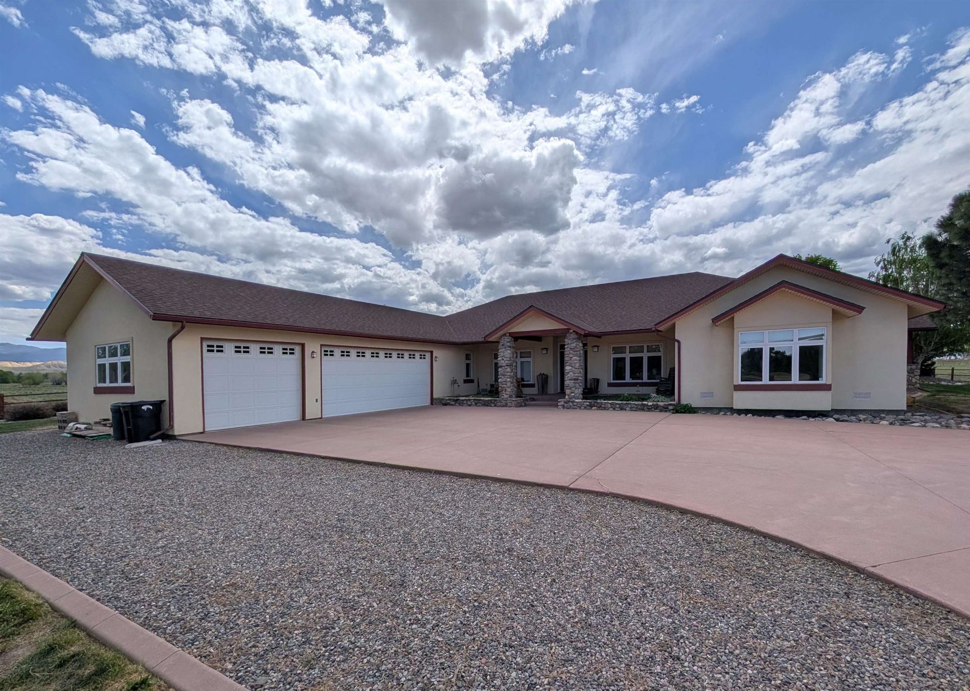 This spectacular holding is a Montrose County gem- featuring a rural locale, huge view corridor, 14 irrigated acres, equestrian facilities (40x36'barn), and a magnificent 3,609 SF, 4-bed / 2.5 bath, home. With the entire San Juans, from Sneffels to Potosi, splayed above irrigated hay land, the home feels like rural Colorado, yet maintains a 5-minute commute to town. Whether it be the wood rail fencing and log gateway or the split floor plan and open kitchen (featuring granite countertops and custom alder cabinets) this is a well thought out and meticulously maintained home. The roof was completely re-shingled 2 years ago, the hardwood floors are immaculate, and everything is 'move in ready. From working in the his/her's offices, entertaining in the great room, relaxing in the den, or sipping coffee on the south facing porch, this estate is a treasure in, and of, itself.