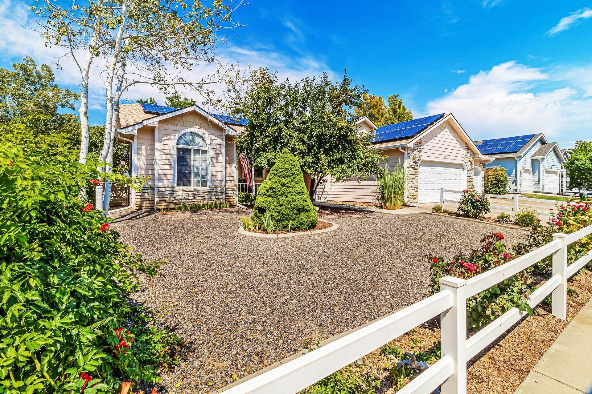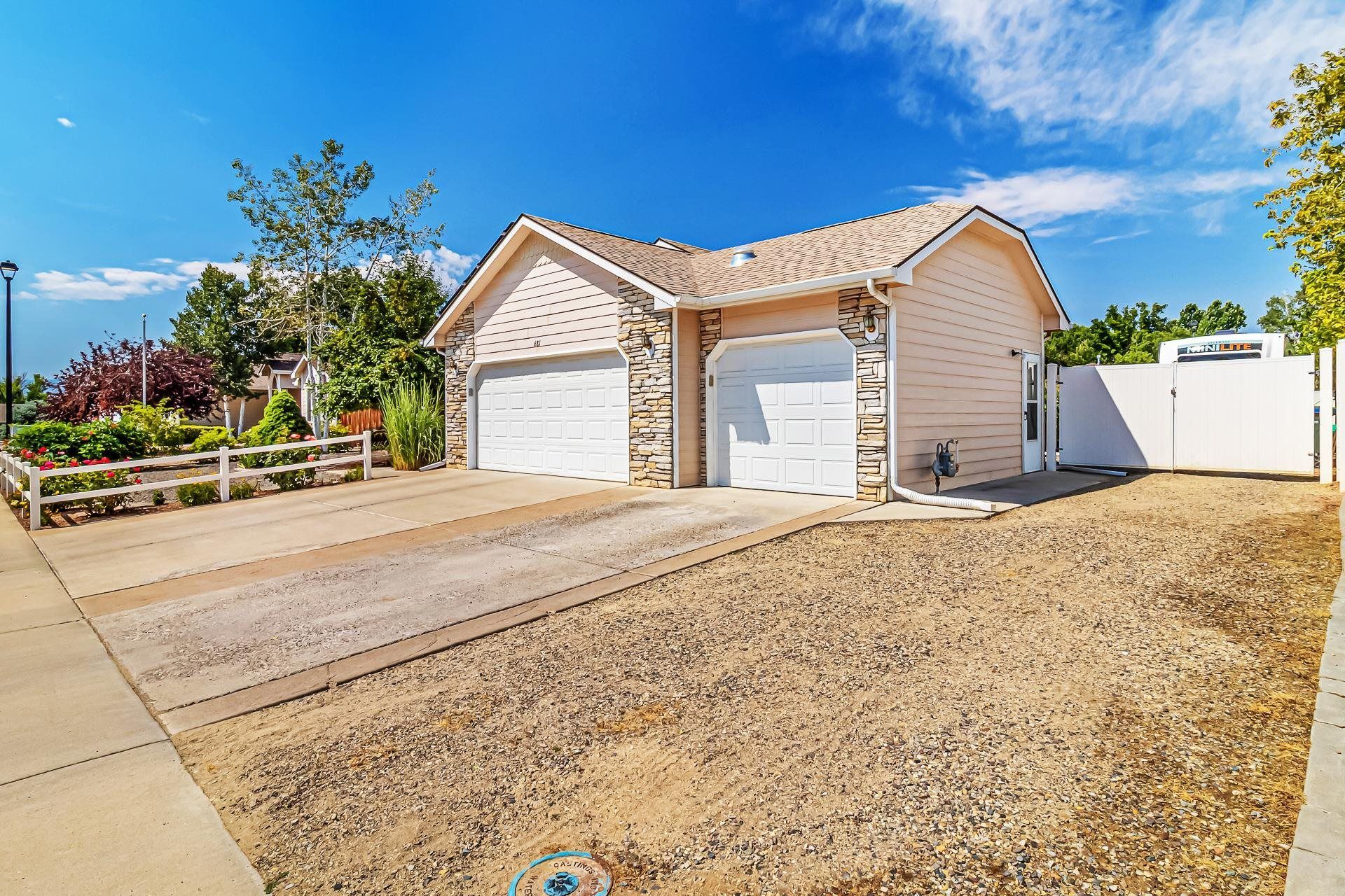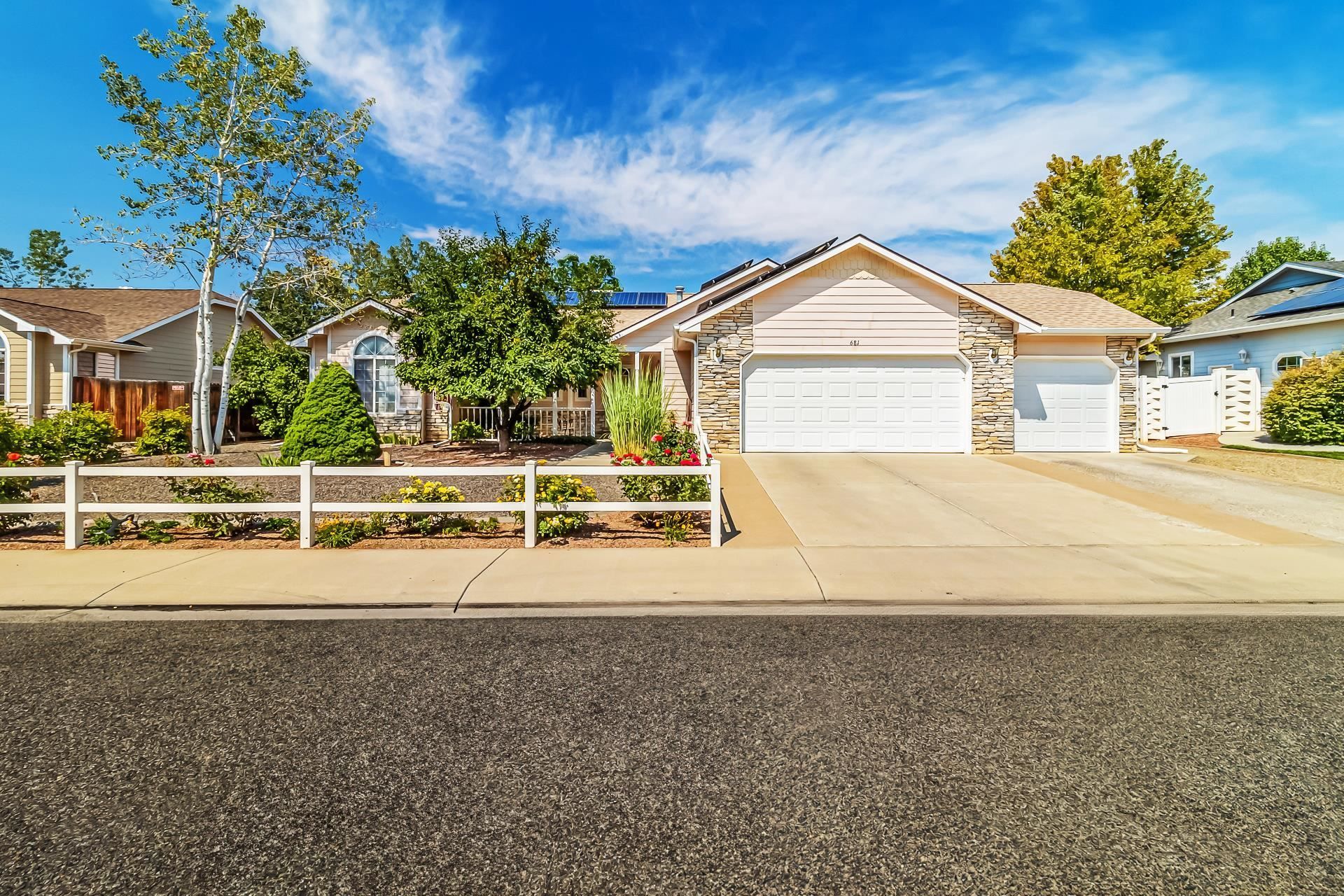 Built in 2000 and ideally located in the desirable North area directly across from the beautiful Moonridge Falls subdivision, this well-maintained Ranch-style home offers comfort, convenience, and functionality. Situated with a quiet 14-lot neighborhood, you'll enjoy peaceful living just 1.5 miles from Mesa Mall, theaters, specialty shops, and a variety of great restaurants. This inviting home features 3 bedrooms, 2 full baths, and a spacious 3 car garage. The current owners have thoughtfully converted the 3rd bay into a functional office, while still maintaining a separate front storage area with its own overhead doors - perfect for tools, toys, and landscaping equipment. Outdoor enthusiasts will appreciate the large RV parking area complete with a 50-amp outlet and convenient rear access to 25 1/2 Road. The fully fenced and landscaped yard includes a newer wood deck just off the living room, creating an ideal space for relaxing or entertaining. Added value comes with included solar panels, helping keep the utility costs low. This property blends partial upgrades with a prime location - an excellent opportunity to enjoy North area living at its best.