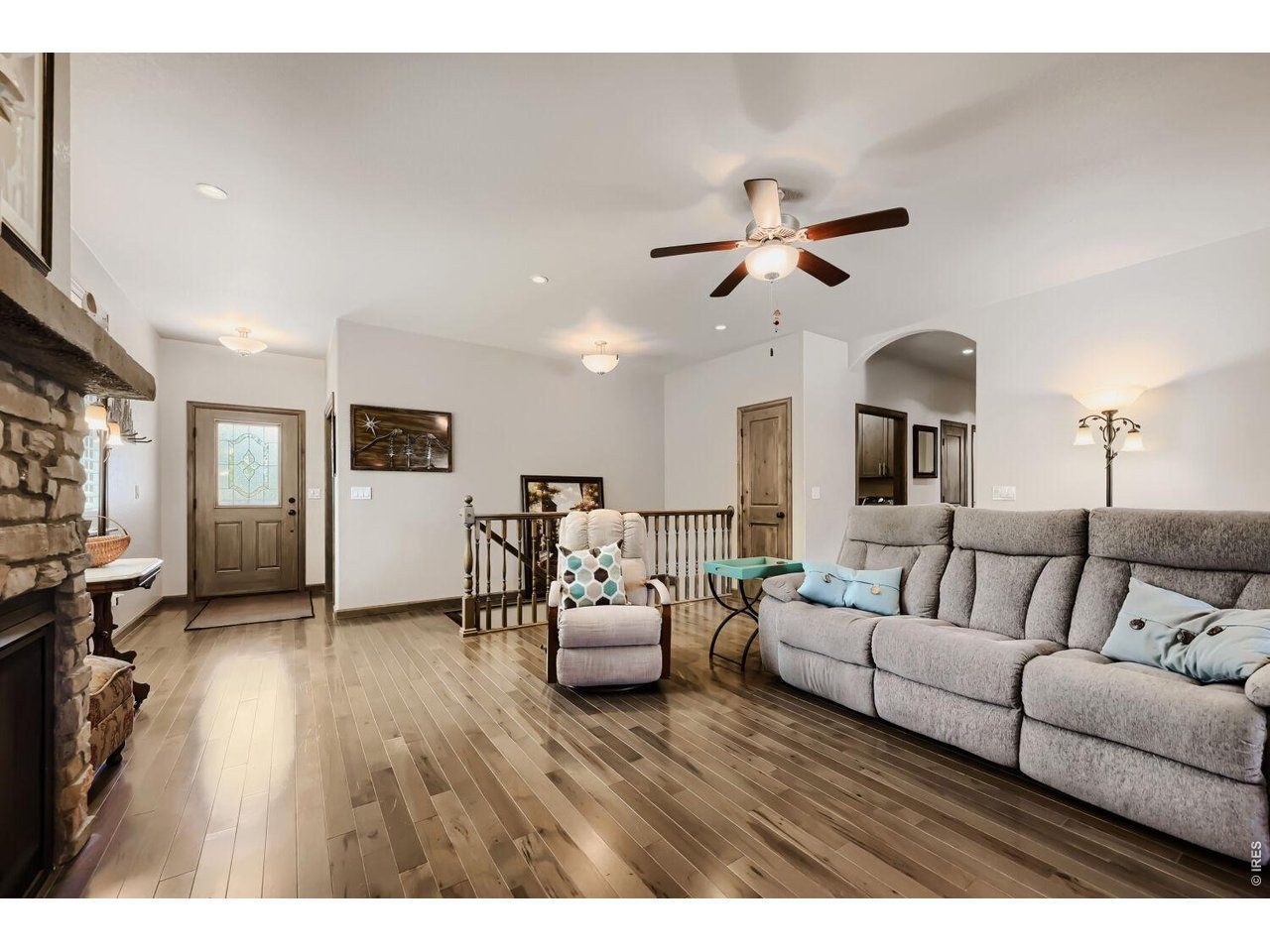 Welcome to this warm & inviting 2 bed, 2 bath duplex in Gateway Park! The open floor plan creates a seamless flow between the kitchen, living, and dining areas. The living room features a cozy fireplace that anchors the space and adds warmth and character. The well appointed kitchen features a gas range, island, pantry with custom shelving, and plenty of cabinet space. Don't miss the roll out shelves in the lower kitchen cabinets! The backyard is off of the eating space and has a deck, patio, and small grass area. The laundry room features a sink, cabinets, and closet, with easy access to the garage. The primary suite is light and bright. The primary bathroom has 2 sinks and is attached to the walk in closet. The 2nd bedroom can also be used for an office and has a door directly to the 2nd bath. The unfinished basement awaits your personal touch and ideas. Don't miss this exceptional opportunity to own a home in the sought-after Gateway Park community that rarely makes its way to the market. With a thoughtful layout and quality finishes throughout, this home delivers comfortable, single-level living at its finest.