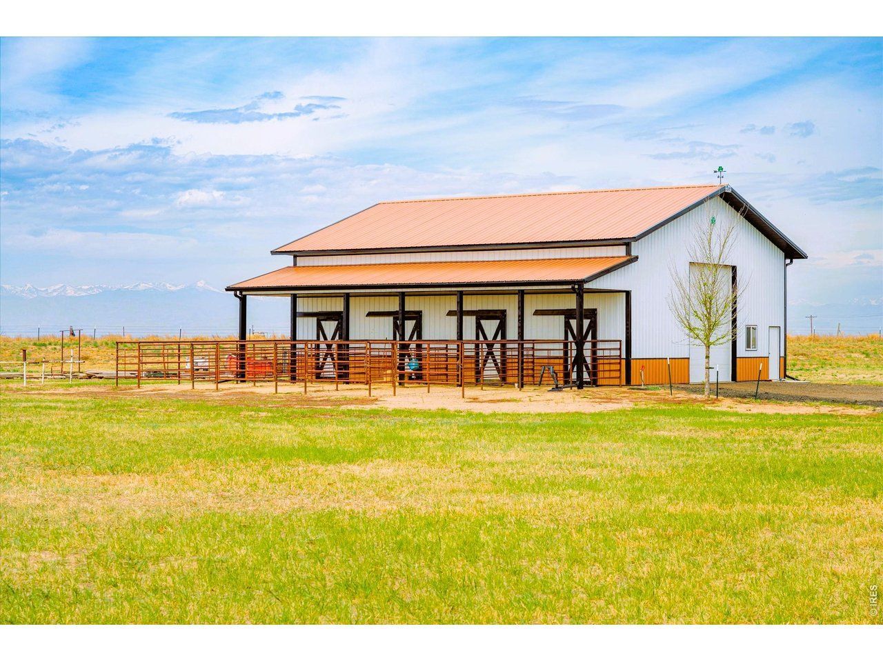 Custom and like brand new ranch style home situated on 10+/- acres located just outside of Firestone! This 3248 sq ft stucco /stone 3 bedroom 3 bath home features 8 ft knotty alder doors, custom cabinetry, walk in pantry, stainless appliances, granite countertops, kitchen island, ample storage, office with barn doors, huge laundry area, finished garage, Stone gas fireplace, on demand water heater, wet bar with refrigerator and ice machine, very open floorplan, surround sound, covered patio and outdoor living area, walk in closets, and so much more! Shop/barn with 14 foot overhead door, pipe runs, 4 stalls, automatic waterers, Apartment/office with laundry area 3/4 bath and kitchen. Pastures fully fenced and cross fenced. There is no work to be done just move in! Has Fort Lupton address but is west of HWY 85 and just outside Frederick limits.